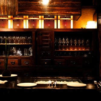 お一人様でも気兼ねなく美食を堪能できるカウンター席です。照明を落とした静かな空間で、自分だけの贅沢な時間を過ごすのに最適。「1名様限定セット」を楽しみながら、シェフの繊細な手仕事を間近に感じられる、大人の特等席としてご利用ください。