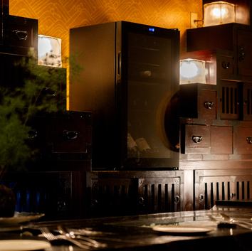 落ち着いた色合いのインテリアで統一され、クラシックな中に和の趣も感じられる大人の空間が和やかな時間を演出。広々とした店内はレイアウト変更可能なテーブル席を備え、グループ利用も可能。会社の集まりや友人同士のパーティに最適です。旬の逸品とソムリエ厳選のワインを囲みながら、贅沢なひと時をお過ごしください。